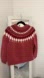 HANDKNIT fisherman fair isle sweater crew neck long sleeves raspberry pinkish red colour with burgundy & cream pattern, size medium (approximate, as it is hand knit-please see measurements for size reference), definitely could be unisex
