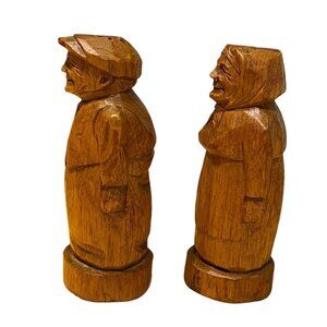 HANDMADE Carved Wood Salt Pepper Shakers Man Woman St Jean Port Joli 4.75'' Flaw