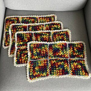 Four colourful handmade crochet placemats