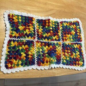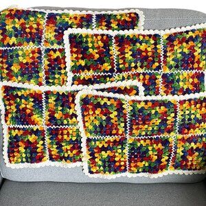 HANDMADE Crochet Placemats Multicoloured Squares Rectangle 15 x 9 Inches