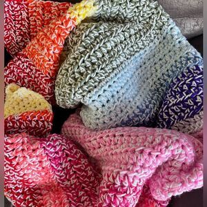 100 percent acrylic yarn so it washes and dries well. I like them better after a wash or two bc they get softer!