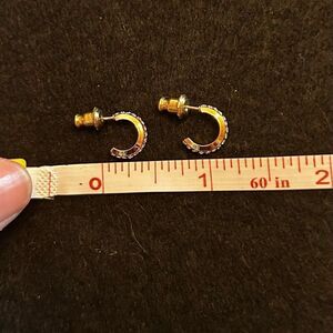Add a touch of elegance with these stunning handmade gold and rhinestone crescent earrings. Perfect for any occasion. Measurments are in photos.