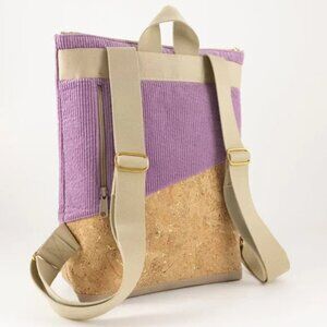 HANDMADE Noas Berlin Purple Lilac Corduroy / Natural Gold Beige Cork Backpack