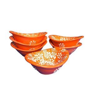 Brand new never used Orange and white patterned , handmade, ceramic small size sauce dishes X 6