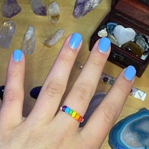 Handmade pride rings. Can be made to fit whatever size ring and made to order :) visit @clover.creation.s on instagram for more information💕