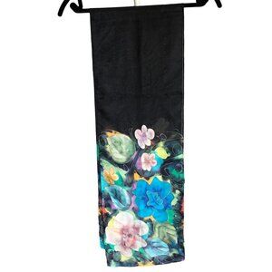 HANDMADE Probably Silk Scarf Black Colourful Flowers Floral Painted Women’s Flaw