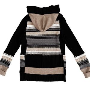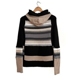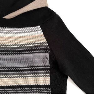 HANDMADE Striped Patchwork Cowl Neck Hoodie Sweater