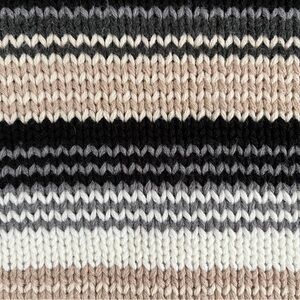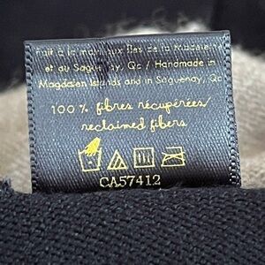 La Machine striped patchwork cowl neck knit hoodie sweater. Handmade in Magdalen Islands and in Saguenay Quebec.