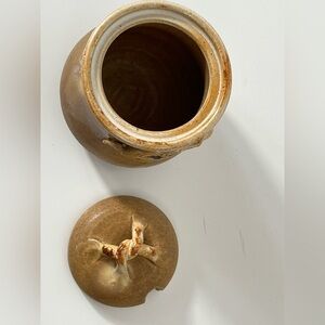 HANDMADE Wheel Thrown Pottery “JAM” Jar with Lid Signed J Lewis Speckle Glaze