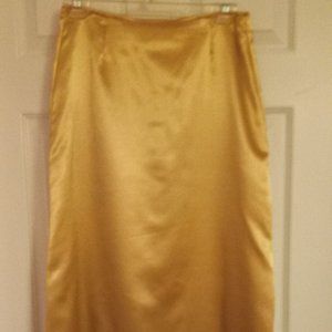 This piece was handmade by my grandmother!! It is not only high quality and in perfect condition, but is was designed and made with the utmost love and care. The top is GOLD WITH LACE, and the skirt is a GOLD SATIN-LIKE material. There are no problems or blemishes that i could find.