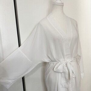 HANRO WHITE WRAP SURPLICE BELTED TUNIC KIMONO ROBE - XS