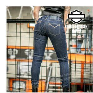 HARLEY DAVIDSON Moto Skinny Ankle Stretch Dark Blue Wash Jeans Size 27