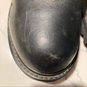 HARLEY DAVIDSON Sz 6 Moto Boots Chunky Sole Thick Leather Zipper and Straps and Buckles. Quintessential HD style and quality. A couple of scuffs on one boot as pictured. Otherwise in excellent condition. Bikercore.