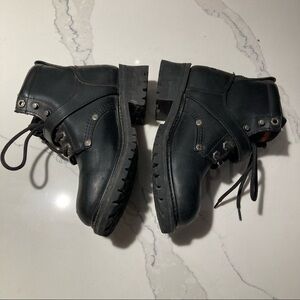 HARLEY DAVIDSON Sz 6 Moto Chunky Sole Thick Leather Zipper and Buckles Booties