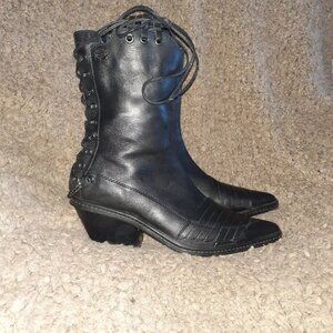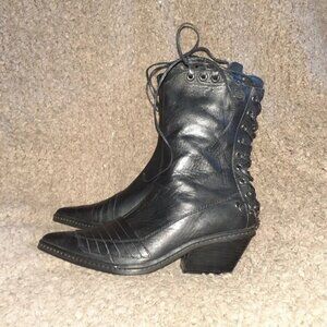 HARLEY DAVIDSON-VANNIS-Black Leather-Corset Back-Chains-Sz 5.5-Near Mint