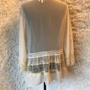 Gorgeous sheer blouse with beautiful lace details. Excellent condition. Off white. Deep V neck.