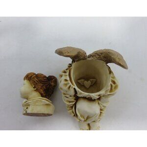 This collectible piece features a charming angelic figure with removable head, revealing a hidden compartment inside.