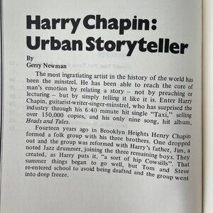 HARRY CHAPIN SONGBOOK Heads & Tales, Words, Music, Tablature Notes Vintage 1970s