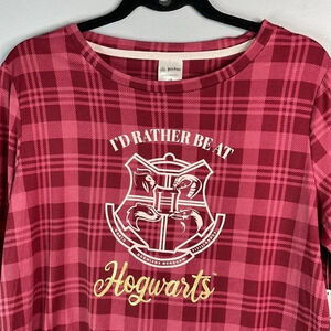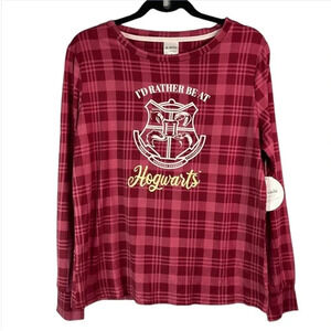 HARRY POTTER NWT I’d Rather Be At Hogwarts Burgundy Plaid Top Long Sleeve Size L