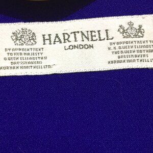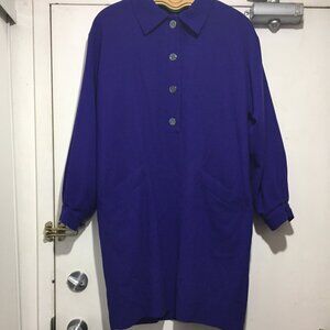 Hartnell London Formal Midi Dress, Lightweight Size 16, Color Purple, 100% Wool, Lined, Front Pockets, Shoulder Pad, Back Pleated, Big Long Sleeve, Closure Buttons, Pullover, Good Condition, Beautiful Dress, Great Look, Great Fit.