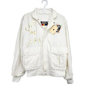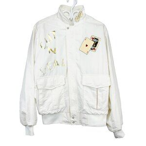HARTWELL 90’s VTG White Bomber Gambling Jacket with Gold Accents sz M