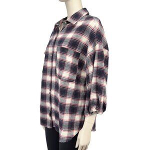 HARVE BENARD Plaid Red White Black & Blue Button Up 3/4 Sleeves Shirt Size XL