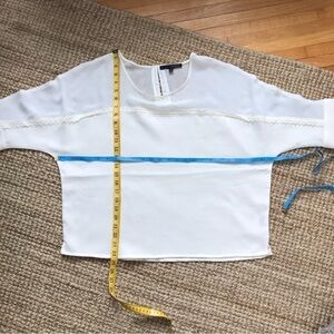 Gorgeous top! Excellent condition! Coleman sleeves, keyhole back closure, lace detail, 3/4 sleeves with sweet gold buttons at the cuff.