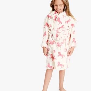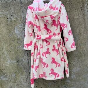 HATLEY Girls' Horse Print Fleece Robe, Cream / Pink, Hooded, 4-5 years
