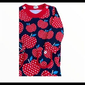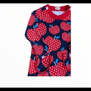 HATLEY Polka Dot Apples Mod Casual Dress With Peter Pan Collar Blue/Red Girls 5Y