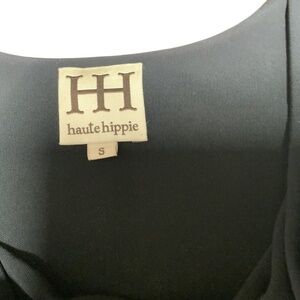 HAUTE HIPPIE 100% Rayon Jersey Knit Black Sleeveless Cowl Neck Mini Dress Sz S