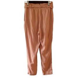 HAVE Paper Bag Pants Linen Blend Pink High Waist Belted Modern Beachy Size Small