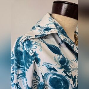HAWKES & CURTIS London Hipster Floral White and Blue Women's Dress Shirt.Size 8
