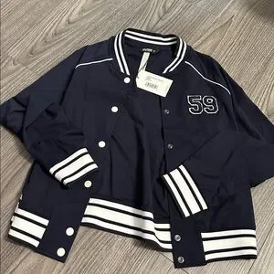 OUR HAYES VARSITY RIGOR JACKET PAIRS CLASSIC VARSITY STYLE WITH PREMIUM FABRIC. LIGHT ENOUGH TO THROW ON AFTER A WORKOUT BUT REFINED ENOUGH TO ELEVATE ANY OUTFIT FOR AN EFFORTLESS SPORTY VIBE THAT FEELS AS GOOD AS IT LOOKS.