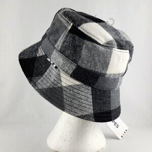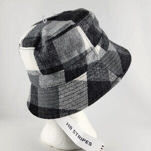 HB STRIPES Women's Bucket Hat Grey White Black Plaid Wool Blend Fleece Lined O/S