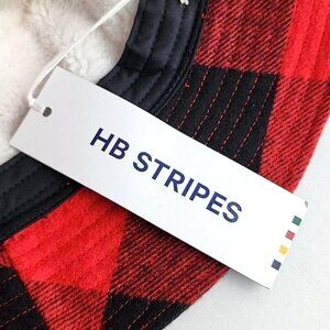 New with tags, HB STRIPES women's bucket hat in racing red and black plaid wool blend and lined in a soft cozy fleece, O/S. Head circumference is approx 23 inches.