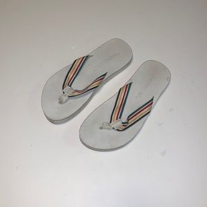 EUC Hudson’s Bay Company (HBC) x Teva white and classic stripes collectable limited edition rubber thong sandals in women’s size eight (8).