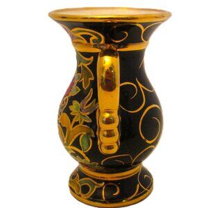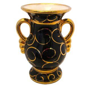 A desirable H.B.Quaregnon elequent flower vase of ebony black & gold hand painted and gold edging and a creamy white ceramic finish inside as well the hard beautiful finish outside. A very tiny discoloration in a spot of gold.