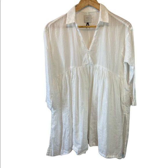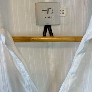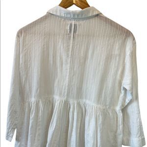 HD White Empire Waist Collared Loose Fit Long Tunic Blouse 6