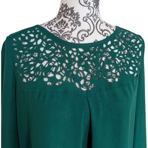 HD in Paris Anthropologie Dara Blouse Laser Cut Relaxed Fit Kelly Green Women 6