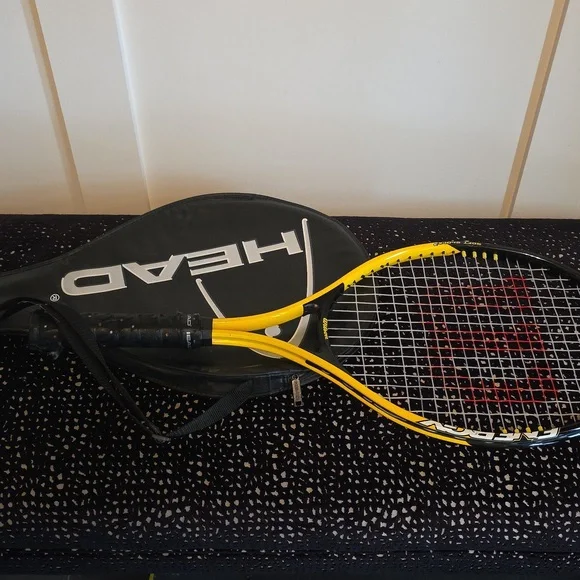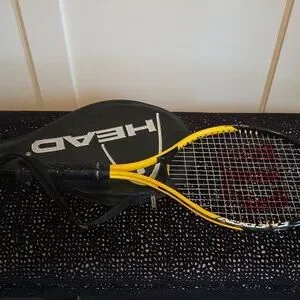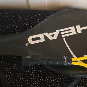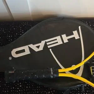Dynamic HEAD racket with striking yellow and black design. Includes protective cover. the handle cover possibly needs a replacement.