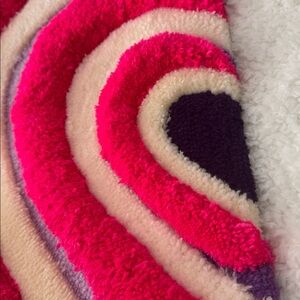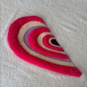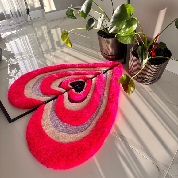 This rug is uniquely designed in nested heart shapes, perfect for placing in front of a mirror. It adds a charming and romantic touch to your space while providing a soft and comfortable surface. Crafted with high-quality materials, this rug enhances both the aesthetic appeal and functionality of your room, making it an ideal addition to your home decor.