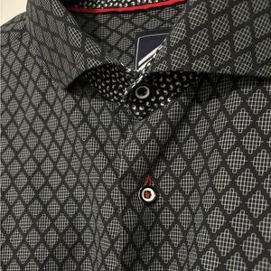 Stylish black shirt with diamond pattern. Ideal for casual outings.