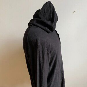 HEDGE Mens Black Hooded Lightweight Henley Sweater BNWOT New Long Sleeve
