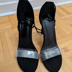 Sandals with invisivble band are a study in after-dark elevation. The lace-up design offers a customisable fit, tracing the leg with a delicate detail. The high heel lends a considered lift, perfect for offsetting tailored pants or a midi skirt. Heels height: 10 cm (4 in). If you wear a size 7, it will fit you.