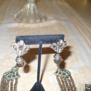 HEIDI ' AGE OF ELEGANCE' MULTI STRAND NECKLACE, TWO CONVERTIBLE BRACELETS THAT CAN BE USED TO EXTEND THE LENGTH OF THE NECKLACE AND MATCHING PIERCED EARRINGS - TOPAZ COLORWAY - NEW IN GOLD BOX COMPLETE STYLING INSTRUCTIONS INCLUDED FOR CHOKER, AND SEVERAL NECKLACE LENGTHS PLUS BRACELETS UNIQUE STYLE