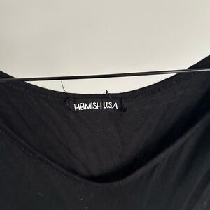 Elegant black tank from HEIMISH USA. Versatile and chic. Fits large Good condition Few loose strings