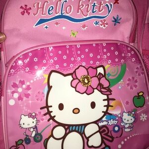 🎀RARE one of a kind baby pink hello kitty full-sized backpack (never seen one like it!) price reflects. Approx 16”x14”. I never wear it!