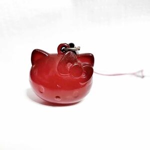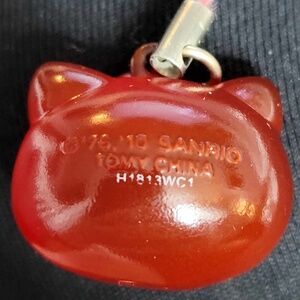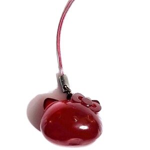 Hello Kitty charm, from 1976, the year Sanrio introduced the character. The charm is red, with Hello Kitty's distinctive bow and facial features.