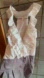 This dress has ruffle details along the front, back and shoulders with a brown skirt that features pockets!
