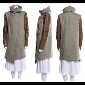 Helmet Lang wool & Lamb Leather brown gray colour block pattern coat Sz XS